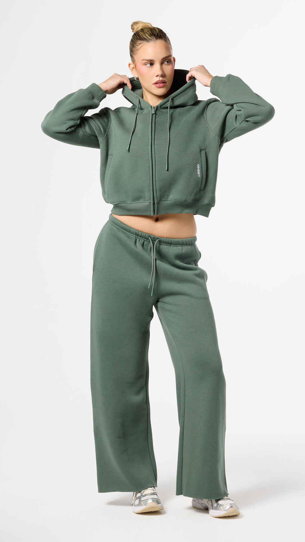 Model in Eucalyptus Green is 5’9” and wearing a S.