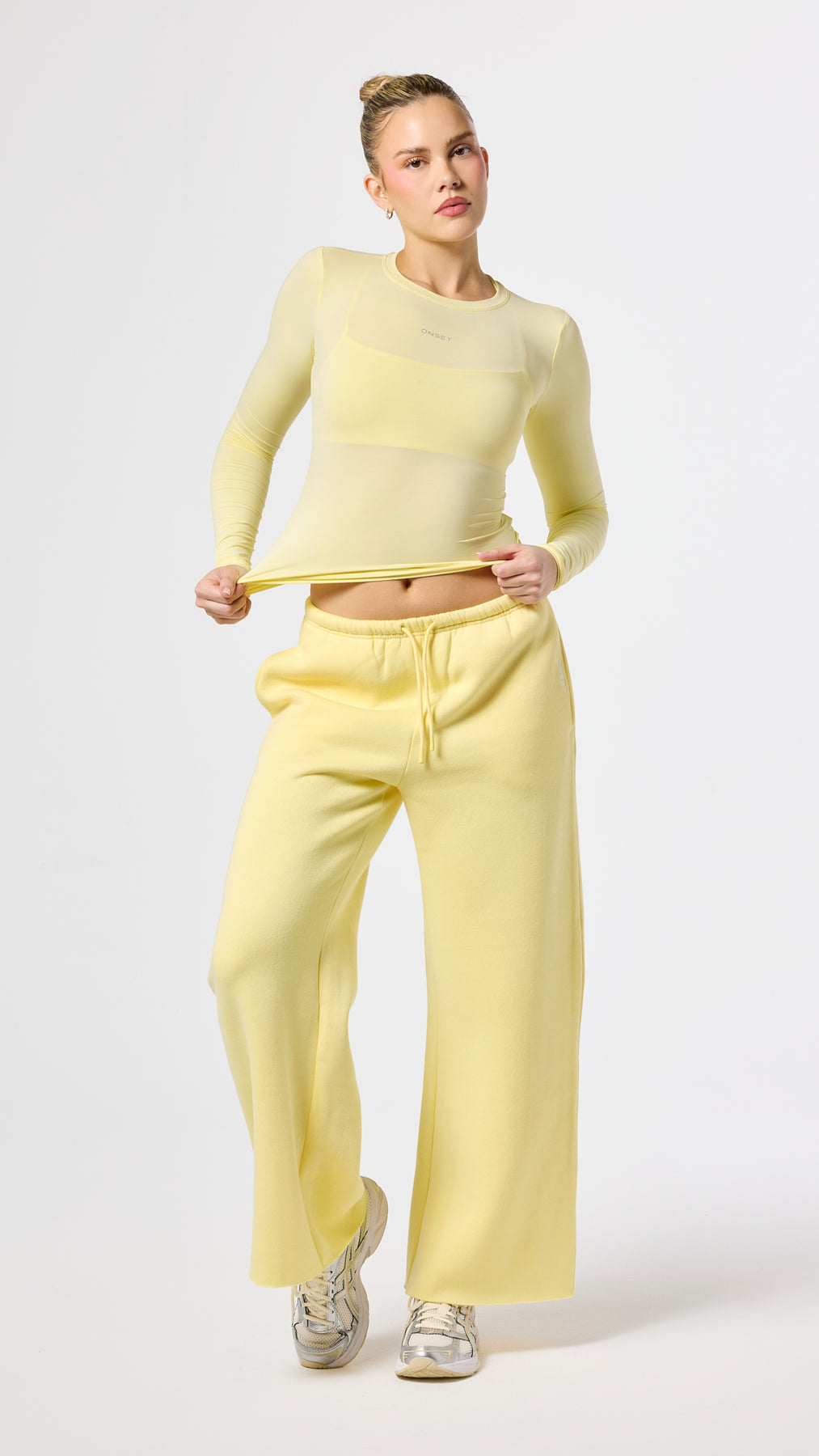 Model in Butter Yellow is 5’9” and wearing a S.