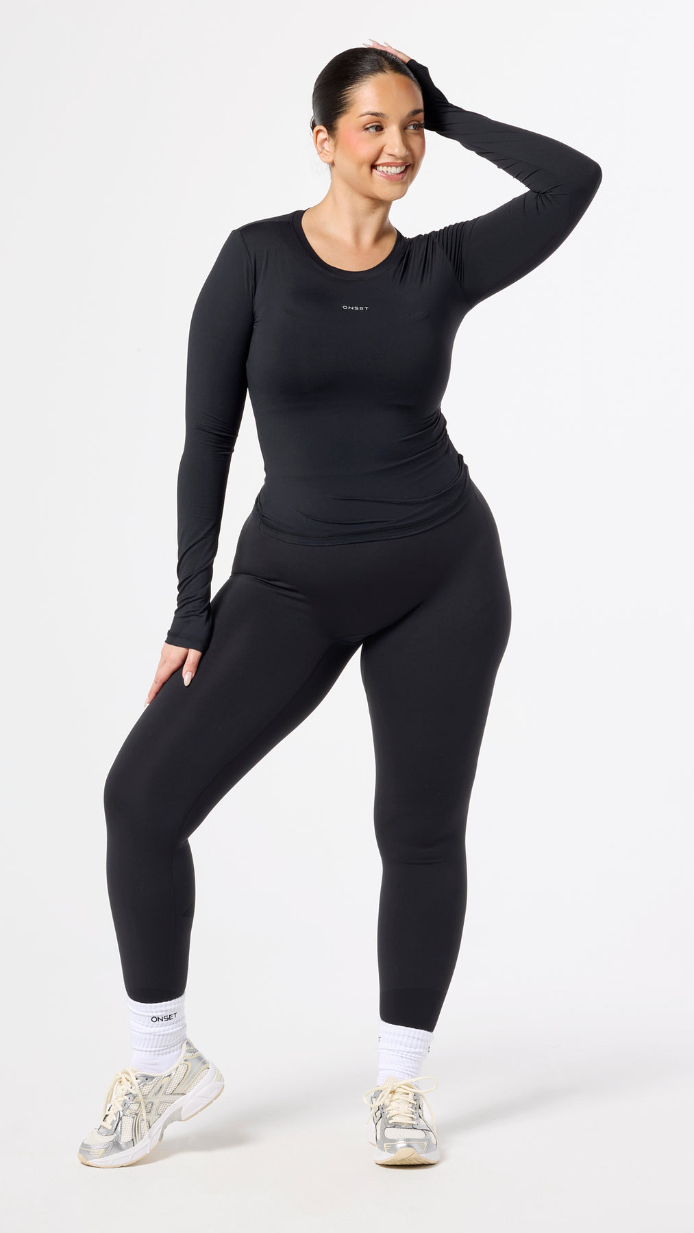 Model in Jet Black is 5’9” and wearing a L.